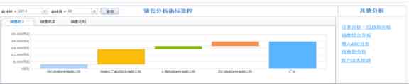 通過(guò)BA平臺(tái)以多種方式實(shí)現(xiàn)監(jiān)控;如儀表板、指標(biāo)進(jìn)度條對(duì)企業(yè)每天商品的出入庫(kù)、銷售收入、回款及毛利情況進(jìn)行監(jiān)控分析,清晰掌握產(chǎn)品的銷售狀況、利潤(rùn)狀況。