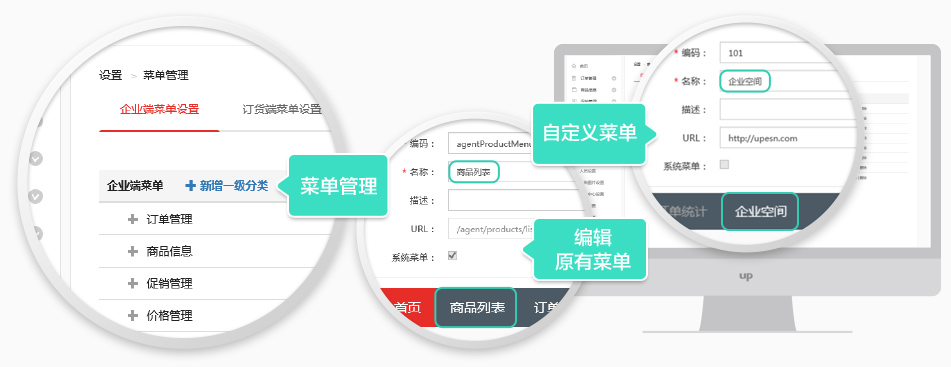 U訂貨可以依據企業個性化需求,定制平臺菜單,構建企業專屬B2B平臺,倍增平臺價值。