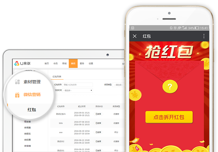 U易聯作為企業的會員管理平臺,不僅有會員卡管理、會員積分管理、連鎖門店會員管理、會員消費記錄管理,幫助企業實現會員數據化經營,了解終端消費者消費習慣及需求;還有微信營銷管理、微商分銷管理、微商城管理,幫助企業實現老會員的促活,新會員的引流與轉化,使新老會員形成消費習慣,產生粘性,擴大企業經營范圍。