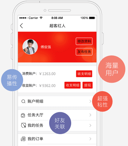 顛覆性的信息傳播方式,通過超客紅人海量的大V資源,以極低的成本使您的產(chǎn)品信息、促銷活動得到病毒式的快速擴(kuò)散,并且可以通過自身行業(yè)選取微信紅人,從而實現(xiàn)精準(zhǔn)推廣,優(yōu)勢傳播,提升品牌知名度。